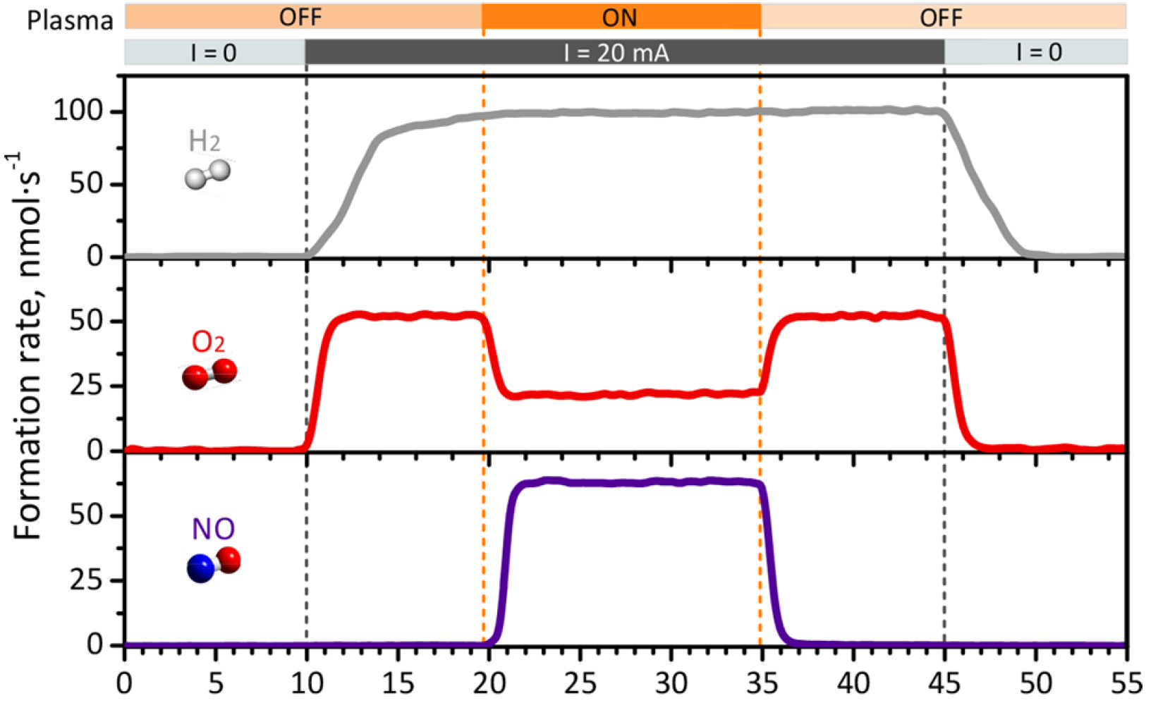 The plasma basically serves as a means to activate the nitrogen gas molecules, just before they encounter the oxygen molecules. The controlled plasma conditions are such that the nitrogen bonds are energized but without breaking the molecule. Post-doc researcher Hrishikesh Patel working on the project and first author of the paper adds: “By allowing these activated nitrogen molecules to react with the oxygen from the water splitting, we effectively demonstrated nitrogen fixation into NO at a low temperature, which lies into realm of all-electric processes.”