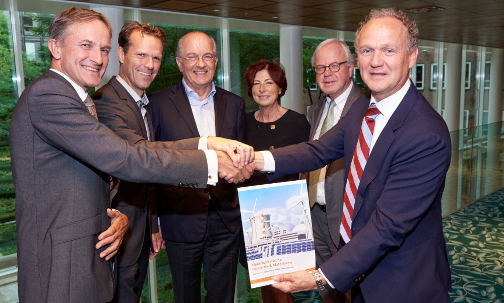 Om met behulp van Elektrochemische Conversie & Materialen (ECCM) de transitie naar een duurzaam energie- en grondstofsysteem te versnellen is een nationale meerjarige aanpak nodig. Dat staat in het advies dat de topsector-boegbeelden Manon Janssen (Energie), Amandus Lundqvist (HTSM) en Emmo Meijer (Chemie) en commissievoorzitter Richard van de Sanden gezamenlijk aanboden aan directeuren-generaal Bertholt Leeftink en Sandor Gaastra van het ministerie van Economische Zaken. De commissie komt met aanbevelingen ten aanzien van governance, regelgeving, onderwijs en onderzoek & ontwikkeling en adviseert bovenal een nationale aanpak in de vorm van een meerjarig publiek-privaat programma. Het rapport is te lezen via www.co2neutraalin2050.nl.